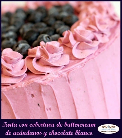 Esta tarta hice para un amigo muy especial, siempre le regalo la tarta de su cumpleaños y este año quería hacer una tarta sin fondant y que no fuera de chocolate. Hice el bizcocho de limón con relleno de crema pastelera de vainilla con trocitos de piña y la cobertura de buttercream de arándanos y chocolate blanco, una tarta totalmente cítrica. Dentro de los frutos rojos, me quedo con los arándanos, son realmente ricos, también tenemos la frambuesa pero la encuentro sosa pero perfecta para decorar los dulces con su tono rojo vino.